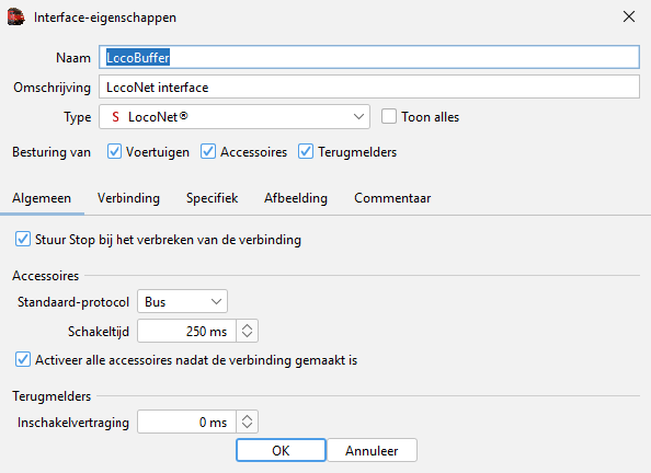 - Maak een nieuwe centrale aan, type 'Loconet'. Kies een logische en herkenbare