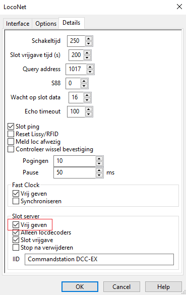 Vink bij slot server vrijgeven 'aan' en vul de naam van de