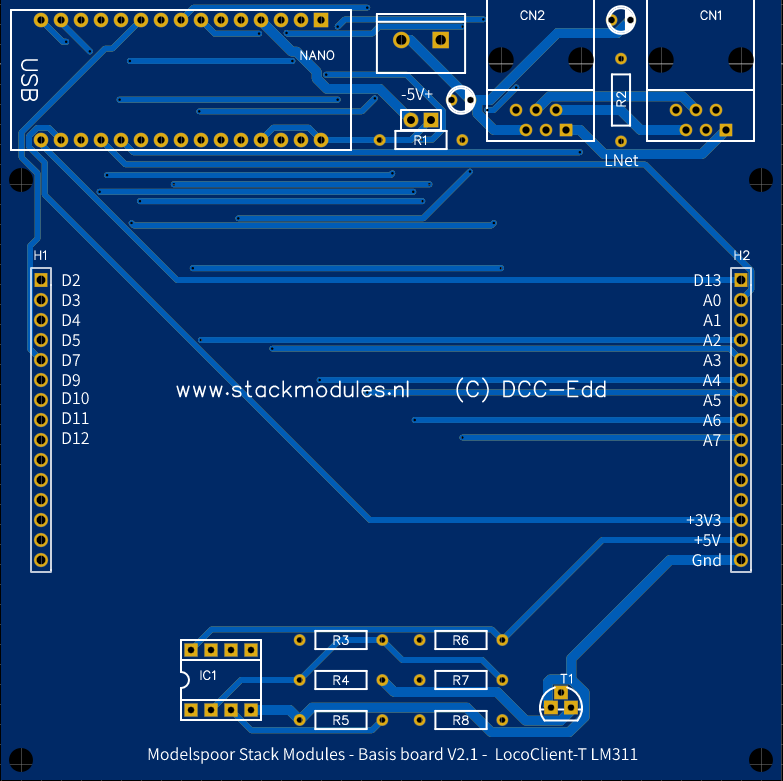 stack boards die op dit basis board passen (zoals wissels, terugmelding, ontkoppelen, seinen,