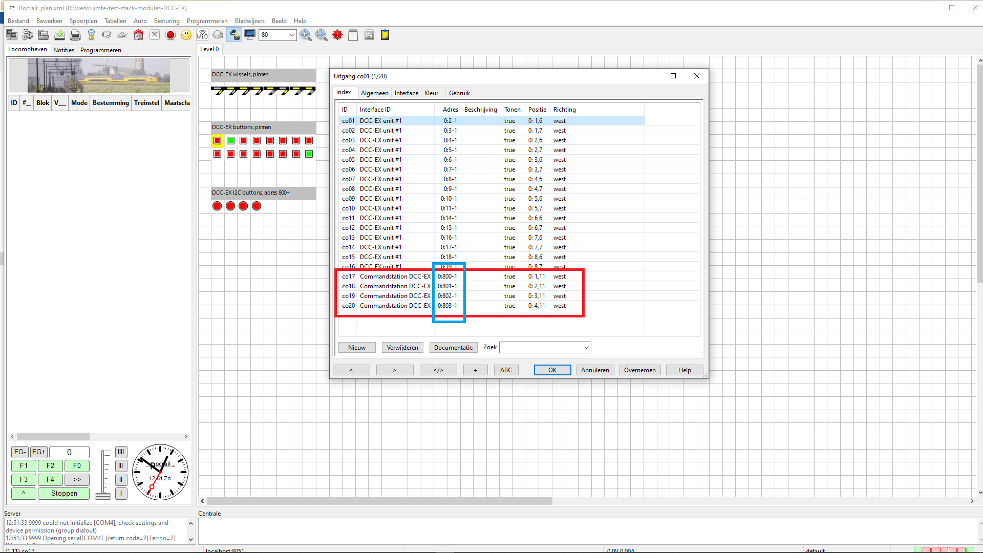 aansturing op pinnen maar op een virtueel adres op het DCC-EX Command Station