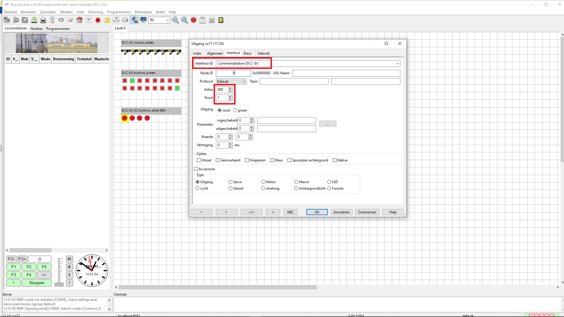 Klik op de afbeeldingen voor configuratiesettings in Rocrail (afbeeldingen