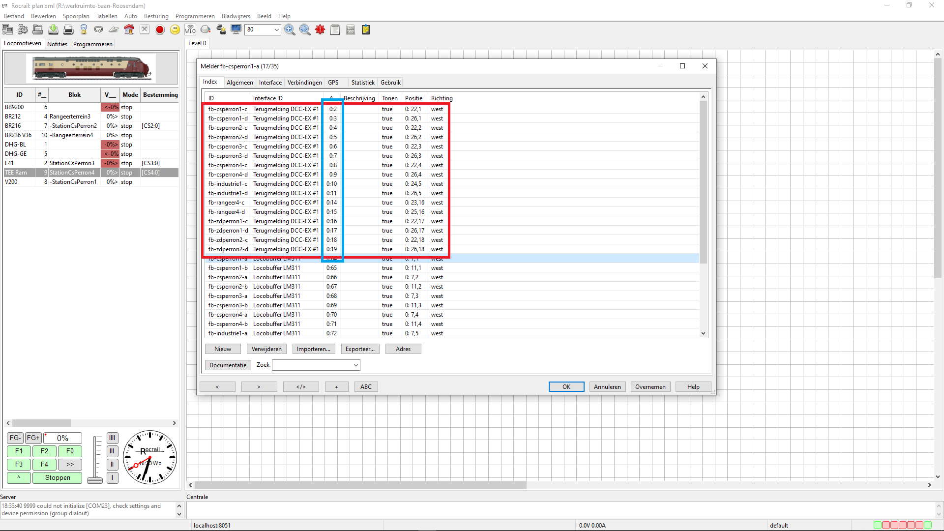Rocrail configuratieMaak binnen Rocrail de volgende melders aan: