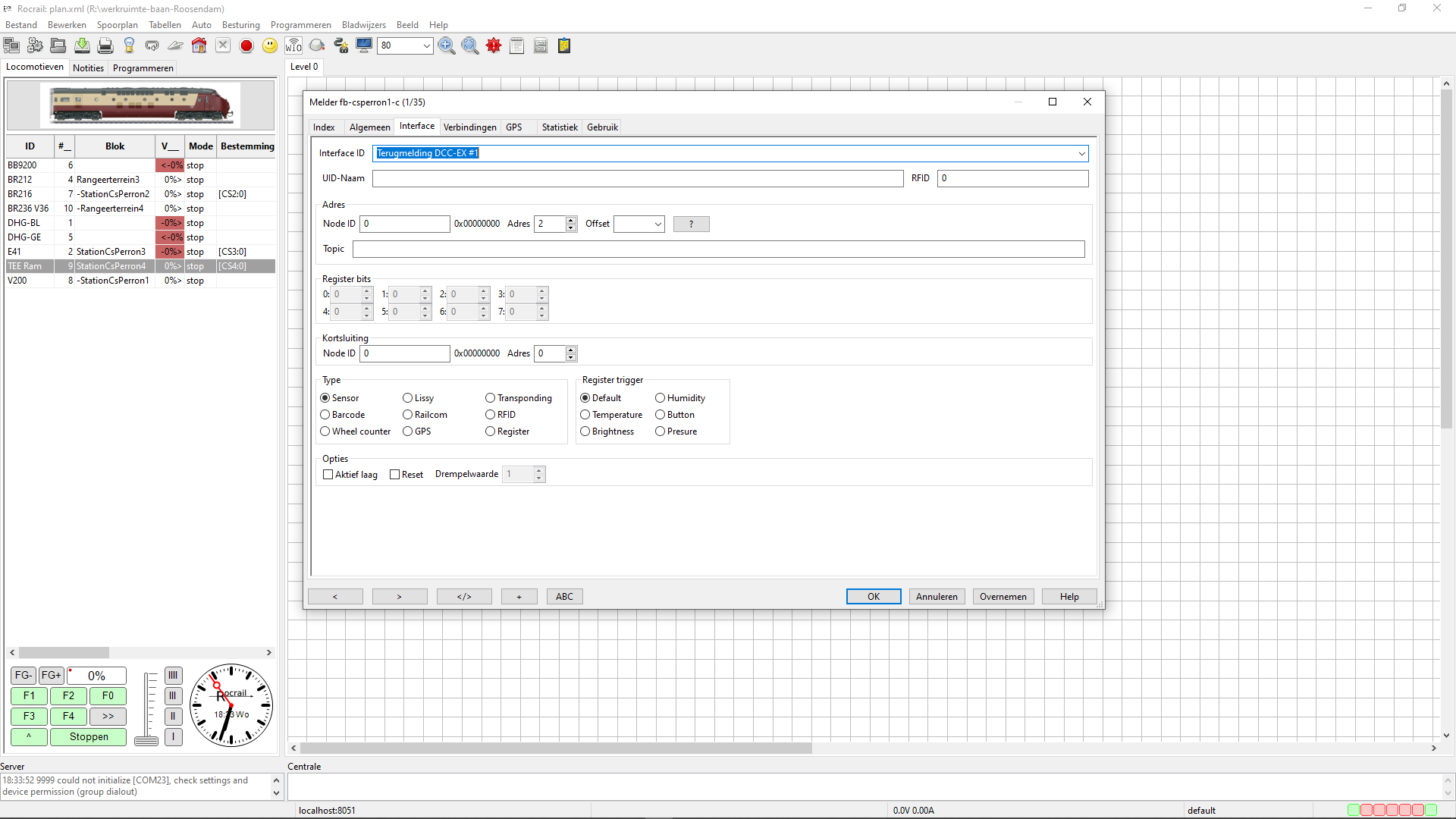 Klik op de afbeeldingen voor configuratiesettings in Rocrail en iTrain (afbeeldingen openen in een nieuw tabblad).