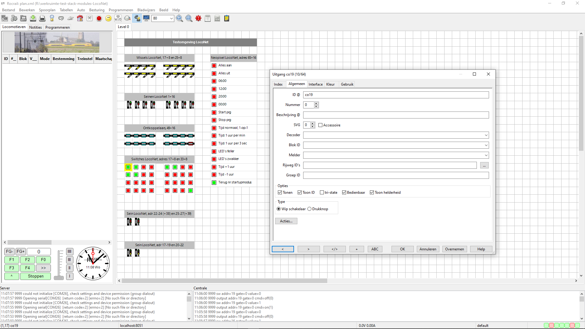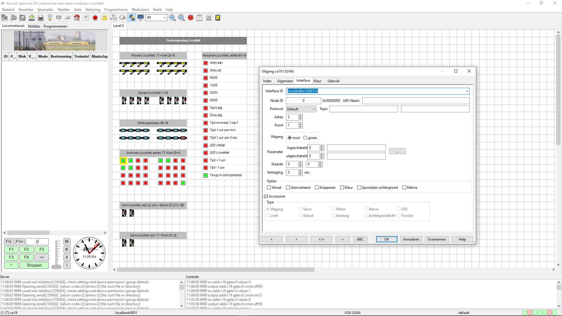 Adressering van wissels, seinen, ontkoppelaars en accessoires binnen Rocrail