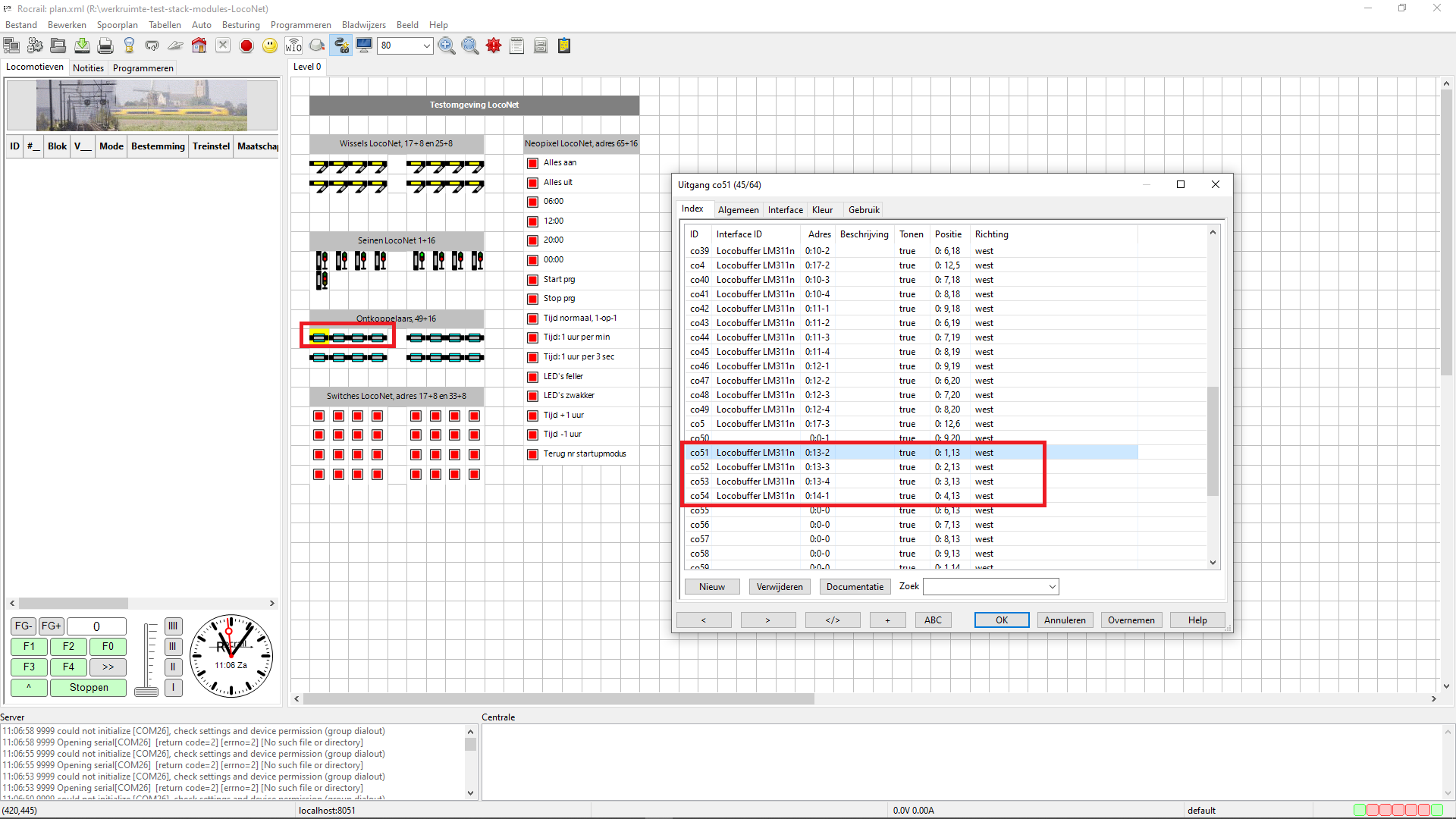 Adressering van wissels, seinen, ontkoppelaars en accessoires binnen Rocrail