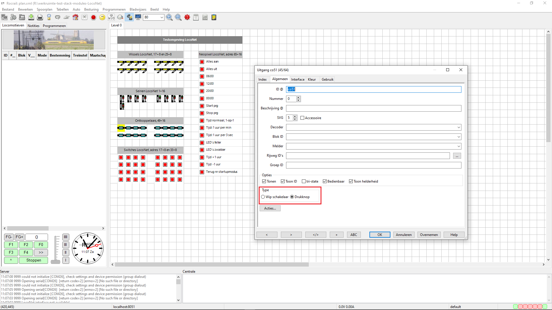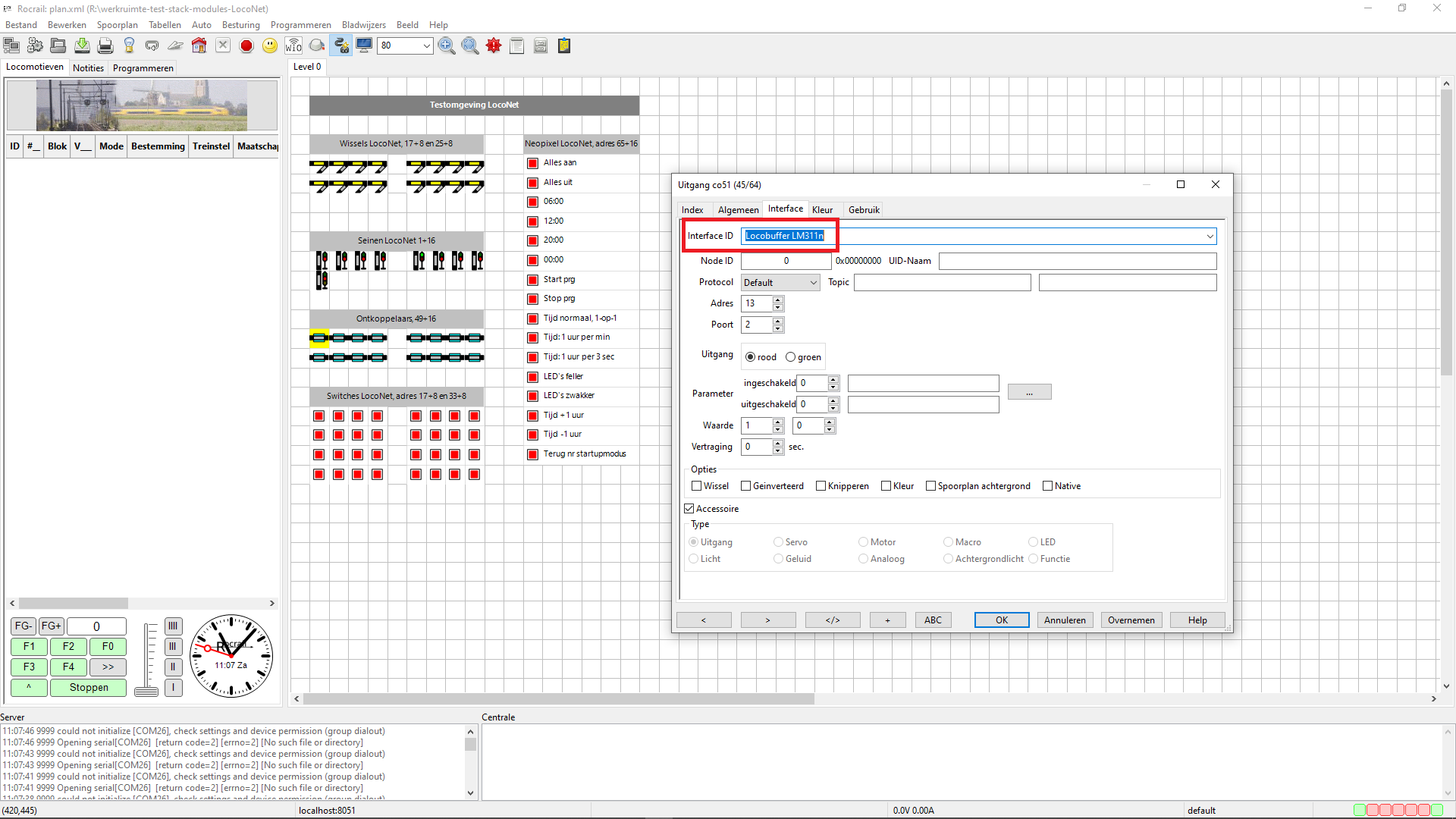 niet om bij elke ontkoppelaar ook de juiste interface aan te geven (LocoBuffer).