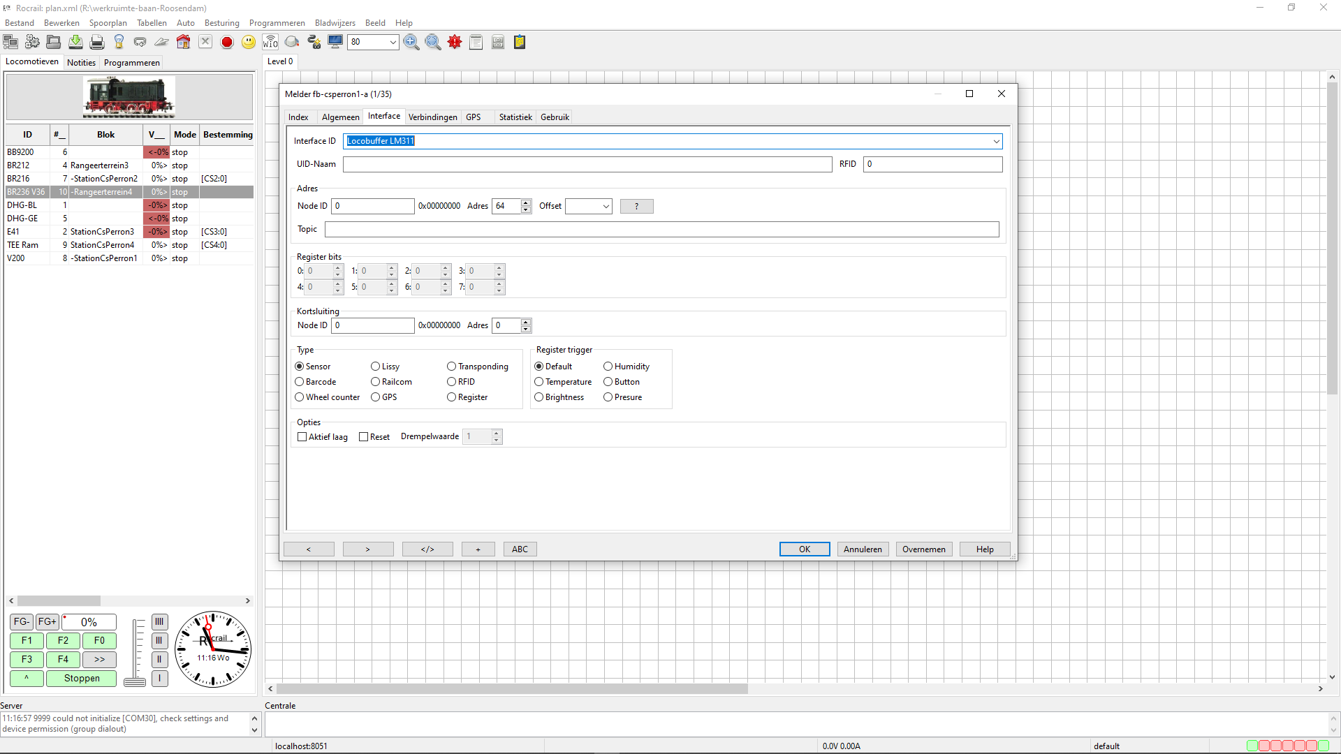 iTrain configuratieConfigureer in iTrain de melders als volgt: