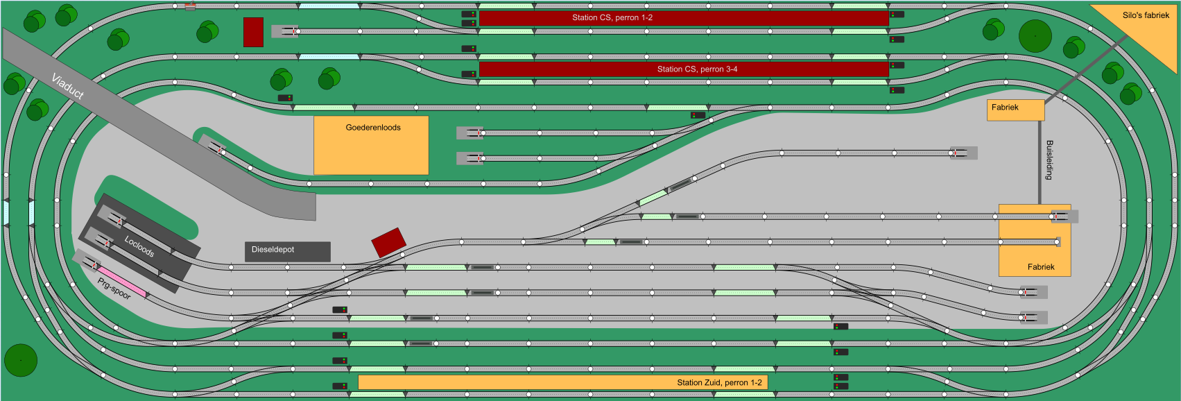 Voorbeelden baanplannen met stack modulesKlik hier om voorbeelden te zien van baanplannen die zijn uitgevoerd met stack modules.