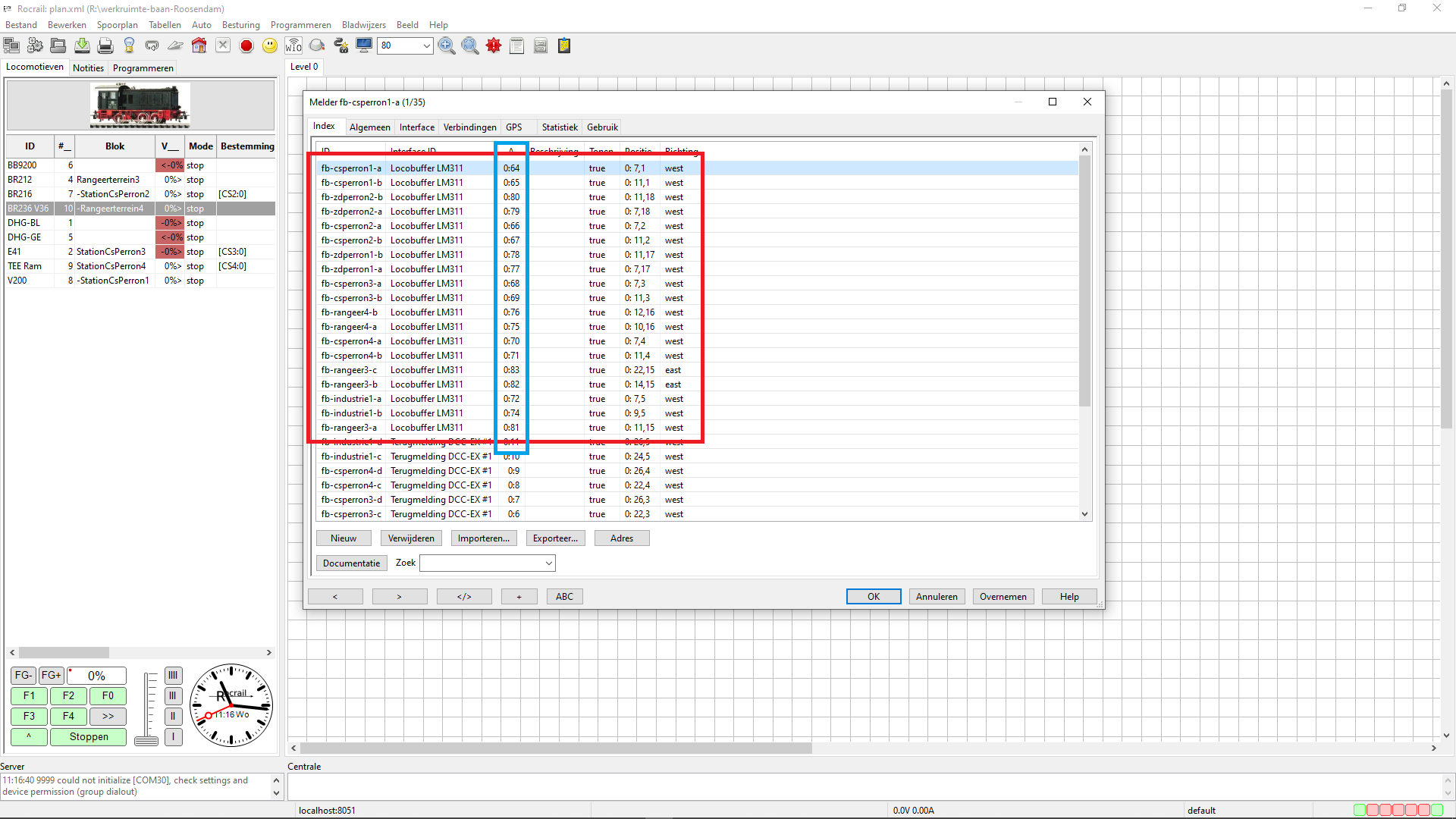 iTrain configuratieConfigureer in iTrain de melders als volgt:
