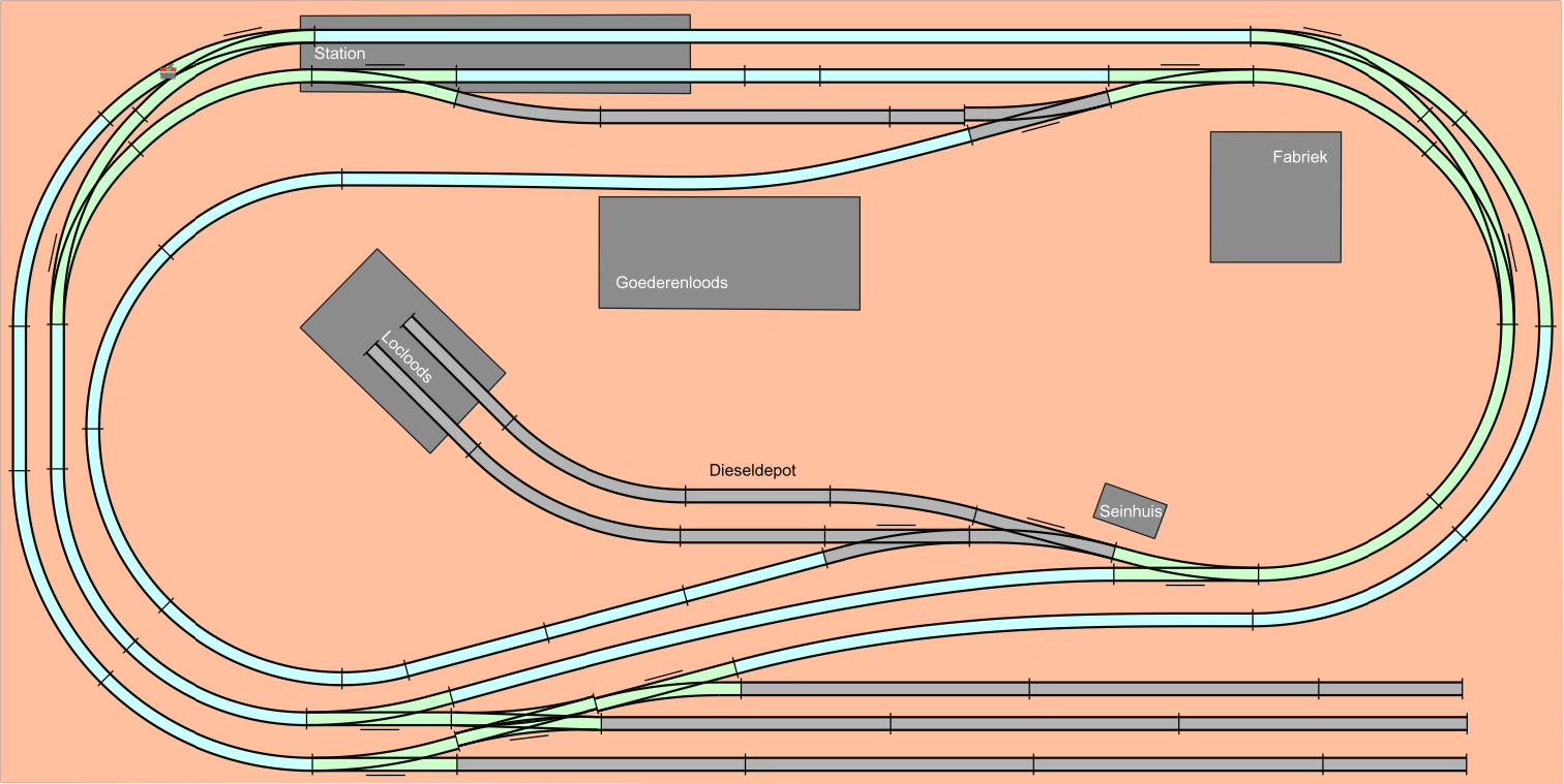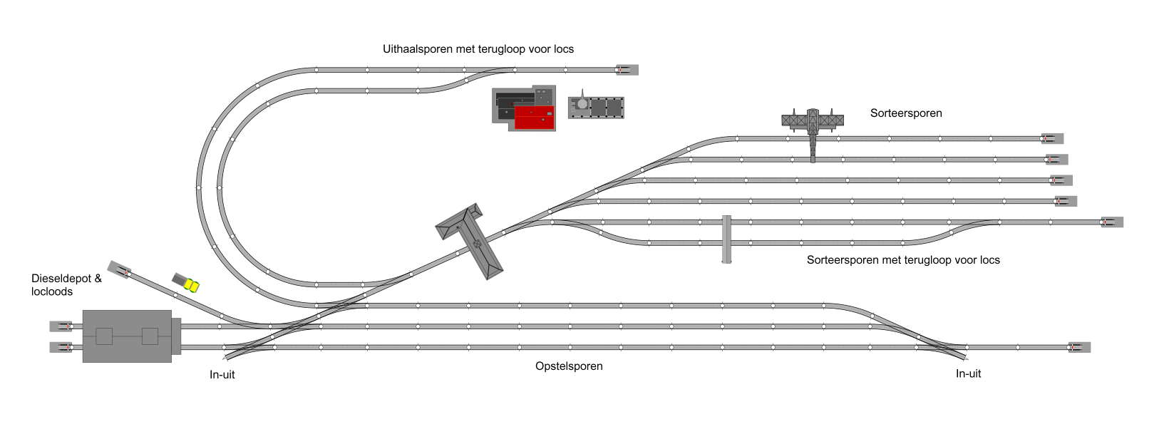 Voorbeelden baanplannen met stack modulesKlik hier om voorbeelden te zien van baanplannen die zijn uitgevoerd met stack modules.